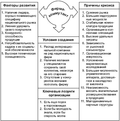 Так появляются фирмы-коммутанты (рис. 9.), осуществляющие средний и малый бизнес, ориентированный на удовлетворение конкретных региональных потребностей, индивидуализированный подход к клиентам, использование достижений фирм-виолентов.