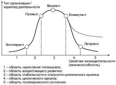 Рис. 4. Жизненный цикл организации – зоны промежуточного и заключительного кризисов