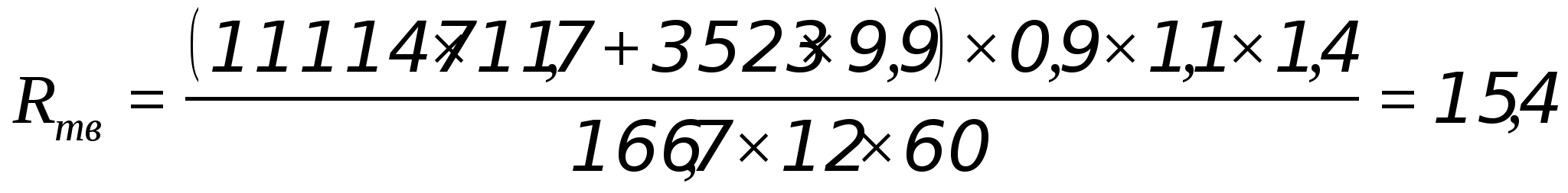 где, R.>яв> – явочная численность работников товарной конторы 17 человек;