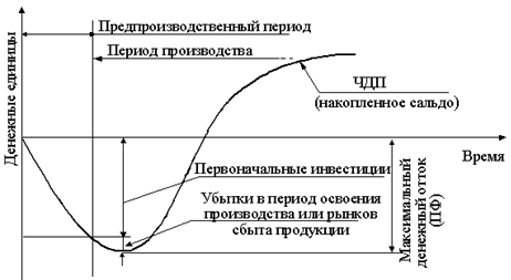 Рис. 6. Графическая интерпретация максимального денежного оттока с учетом дисконтирования (ДПФ)