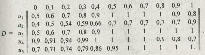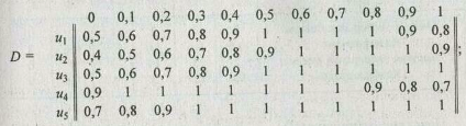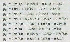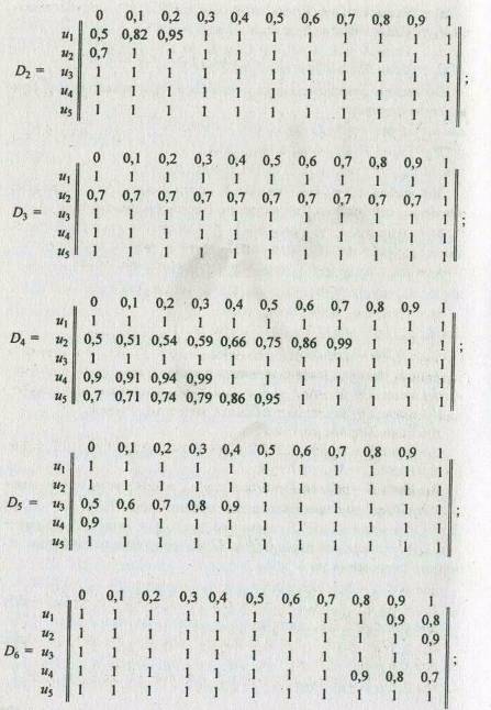 F(u1)—0,560; F(u2)— 0,600; F(u3)—0,575; F(u4)— 0,475; F(u5)— 0,530.