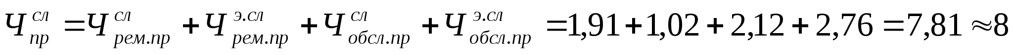 5.6 Расчёт численности ремонтного персонала и персонала по межремонтному обслуживанию