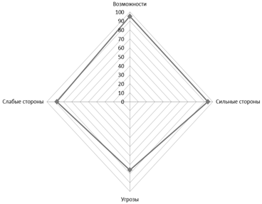 Таким образом, бальная оценка SWOT анализа показала, что возможности превышают угрозы.