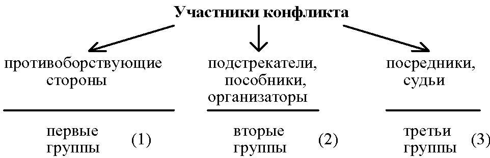 Стороны (участники) конфликта – обычно обозначаются в терминах ролевых позиций, в рамках которых они участвуют в конфликтной ситуации.