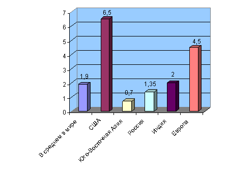 В мире покупается в среднем 1,9 пар обуви на одного человека в год. В США этот показатель составляет 6,5 пар, в Европе - 3,8-4,5 пар, в Юго-восточной Азии - от 0,7 пары, в Индии до 2,0, в России - 1,35 пары обуви (Приложение 2. По материалам http://www.econika.ru/ru/main/shoes/analytics).