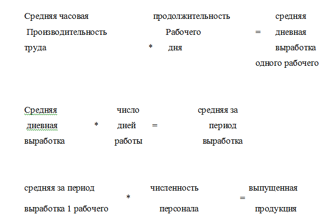 Взаимосвязь между выработкой, средней продолжительностью рабочего дня и численностью персонала.