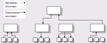 Так як організація складається з декількох підрозділів, яким необхідно узгоджувати свої дії, то це викликає в них необхідність обмінюватись між собою інформацією. Таким чином виникає необхідність в горизонтальних комунікаціях.[11,с.177] Ці комунікації здійснюються між особами, які знаходяться на одному рівні ієрархії. Такий обмін інформацією забезпечує координацію діяльності (наприклад: між віцепрезидентами з маркетингу, фінансів, виробництва).