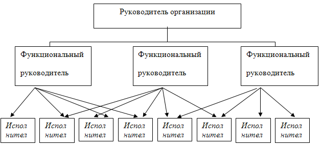 Функциональная организационная структура основана на создании подразделений для выполнения определённых функций на всех уровнях управления. К таким функциям относят: исследования, производство, сбыт, маркетинг и т.д. Здесь с помощью директивного руководства могут быть соединены иерархически нижние звенья управления с различными более высокими звеньями управления. Передача поручений, указаний и сообщений осуществляется в зависимости от вида поставленной задачи.