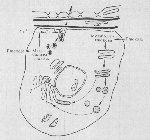 Секреторний процес в інсулоциті ( за Леці, 1972)