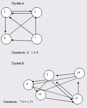 Таким образом, в группе А "лидером мнения" является работник № 5, хотя формальным лидером является №7 .