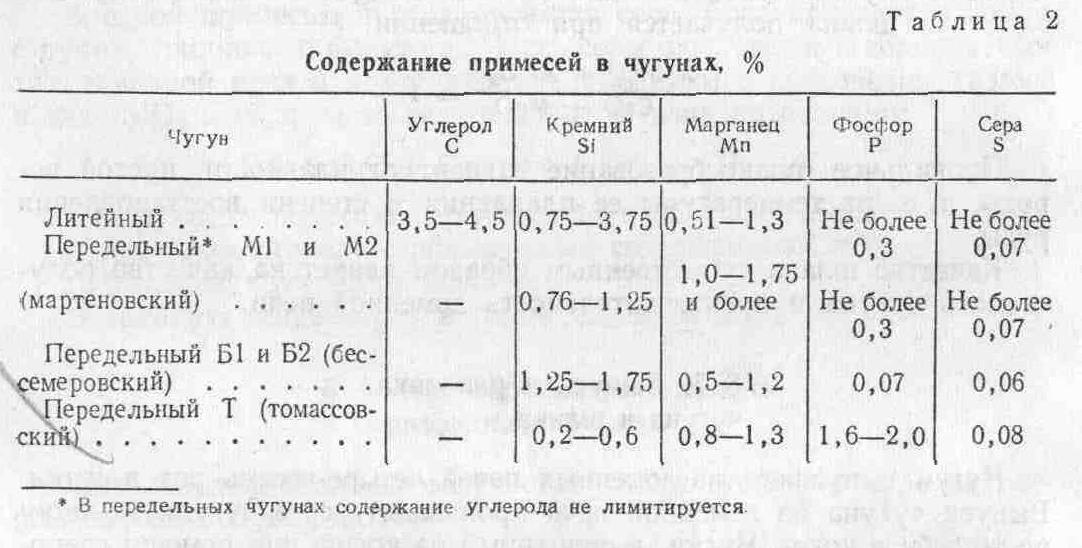 чугуна приведен в табл. 3.