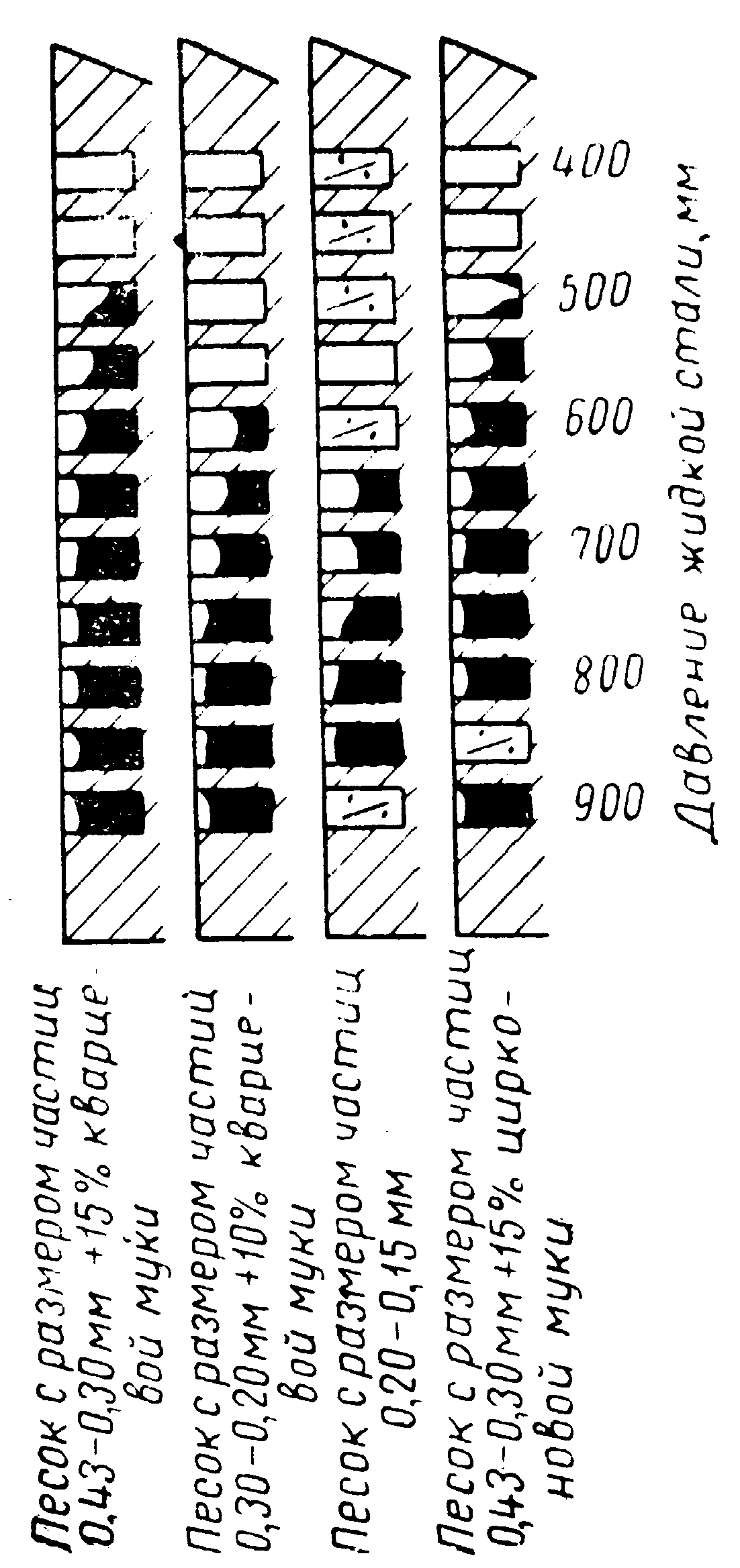 Проведенные опыты показали, что оптимальными являются формовочные смеси со средней величиной зерна основного материала 0,2 мм.