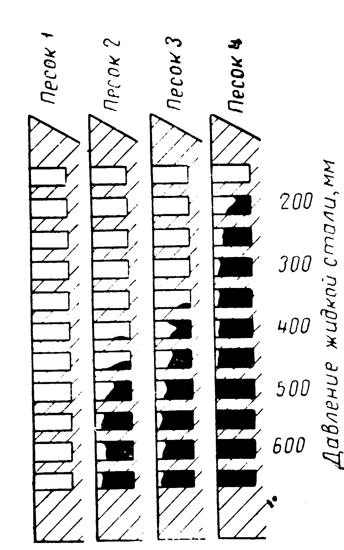 2.2. Влияние давления на глубину проникновения пригарного слоя |