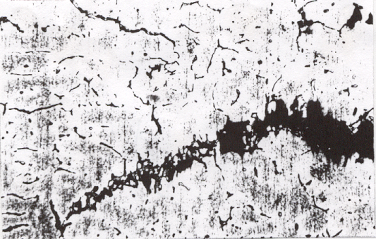 Рис.15 Микроструктура сплавов системы Al – Si – Cu c горячими трещинами: а) Si – 0.25, Cu – 0.25;б) Si – 0.25, Cu – 0.25 с модификатором; в) Si – 0.5, Cu – 0.5;г) Si – 1.0, Cu – 1.0; д) Si – 2.0, Cu – 2.0;е) Si – 3.0, Cu – 3.0; ж) Si – 4.0, Cu – 4.0