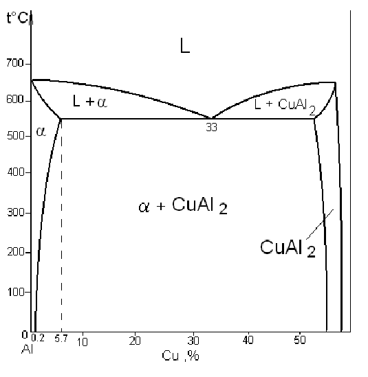 На рисунке 13 представлено изменение горячеломкости сплавов системы Al – Cu в зависимости от содержания меди. Максимальной горячеломкостью обладает сплав, содержащий 0.5% Cu.
