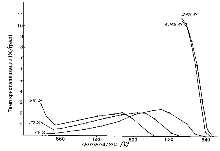 Рис.18 Изменение темпа кристаллизации сплавов системы Al – Si