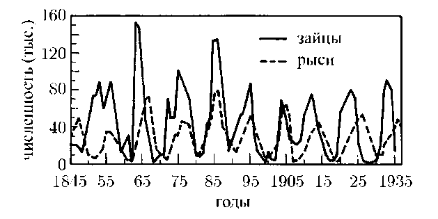 Похожий цикл был обнаружен и в Канаде: хищниками здесь выступают рыси, а жертвами — зайцы (Рис. 3). Поскольку рождаемость и смертность подвержены и разным другим влияниям, описанные нами модельные представления уязвимы для критики, и все же они убедительно показывают, что статическое равновесие природе глубоко чуждо.
