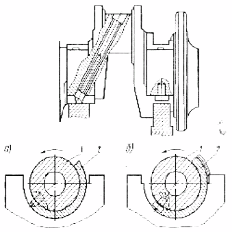 При ремонте опорно-упорных вкладышей выполняют операции, указанные выше и дополнительно проверяют состояние упорных выступов. При изломе упорных выступов или увеличенном зазоре между буртами упорного вкладыша и боковыми поверхностями постелей блока и крышки вкладышей вкладыши подлежат замене.