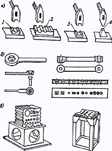 При ковке изделий из низкоуглеродистых сталей требуется меньше число нагревов, чем при ковке подобного изделия из высокоуглеродистой или легированной стали.