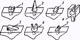При рубке металла зубило ставить только строго вертикально. Рубку производят только по краю наковальни, делая первый и последний удары слабыми. Отрубленный конец поковки следует направлять от себя и в безопасную сторону.