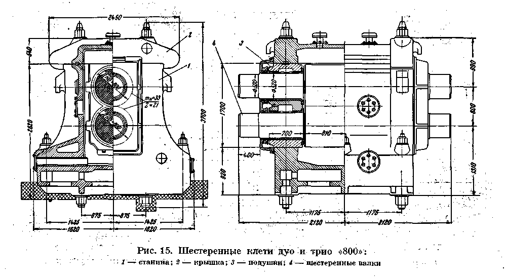 Шестеренные клети дуб и трио «800»' предназначены для передачи вращения от приводных электродвигателей к валкам рабочих клетей соответственно дуо или трио.