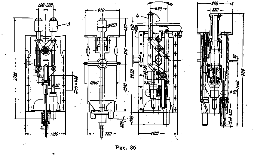 ном положении и укрепляется болтами. Поворот, станины производится с помощью крана.