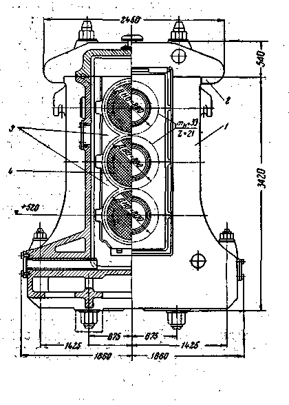 Шестеренная клеть дуо состоит из станины, крышки, комплекта подушек и шестеренных валков.