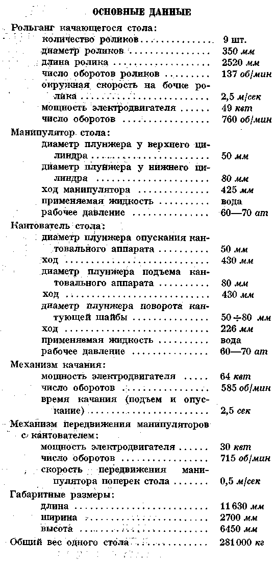 Таблица 1. Характеристика основного оборудования крупносортного стана 700.