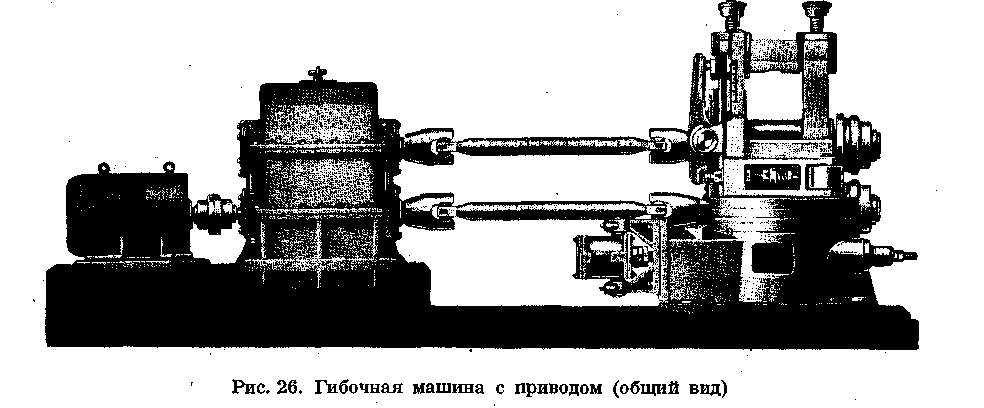 Гибочная машина состоит из рабочей и шестеренной клетей, переднего и заднего гибочных роликов и электродвигателя.