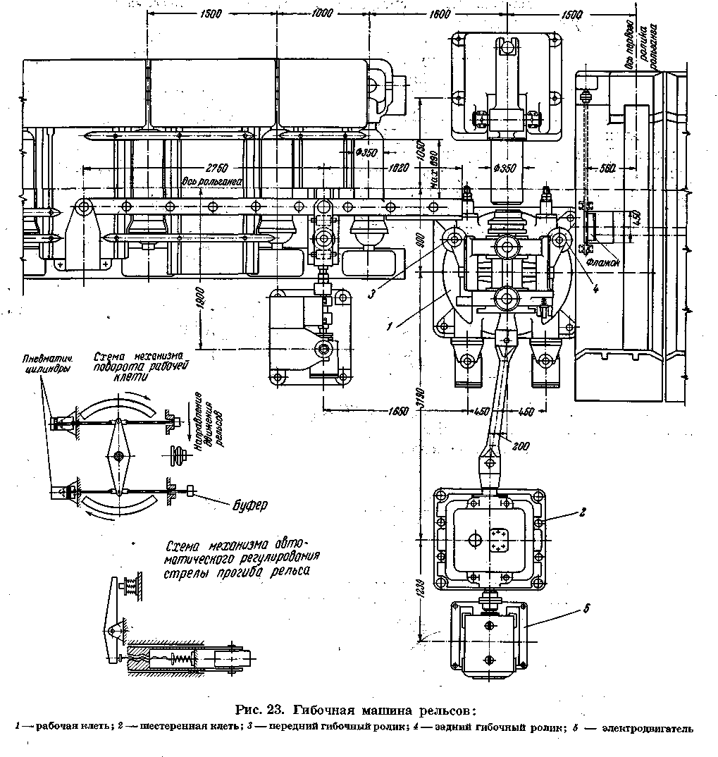 Гибочная машина предназначена для гибки рельсов в горячем состоянии в сторону, обратную изгибу его при остывании на подошву.