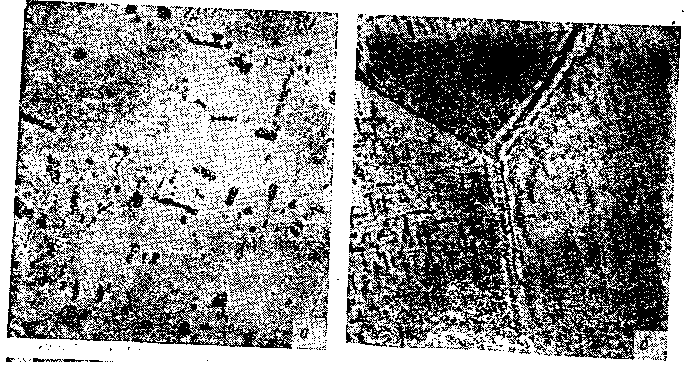 Фаза Ai>2>Si формируется через ряд фазовых превращений, сильно искажающих кристаллическую решетку матрицы, что обусловливает значительное упрочнение сплавов при комнатной температуре. Это достигается применением соответствующей термической обработки (закалки и старения). В тройных сплавах системы А1—Si—Mg были впервые обнаружены в алюминиевой матрице зоны, характеризующие стадии предвыделения. Авторы работ, пользуясь в своих исследованиях методом рентгеноструктурного анализа, в сплавах, состаренных при комнатной температуре, не могли обнаружить структуру зон, хотя механические свойства тронных сплавов повышались. Лишь только при температуре 150оС зоны скопления магния и кремния в матрице располагаются локально. С помощью вакансий (образовавшихся в процессе закалки) растворенные атомы вначале собираются в цепочки без какого-либо порядка, затем атомы легирующих элементов постепенно располагаются в определенном