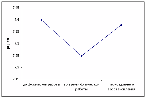 При физической нагрузке происходит закисление крови и тканей кислыми продуктами обмена, преимущественно лактатом, поэтому отмечается значительное снижение рН.