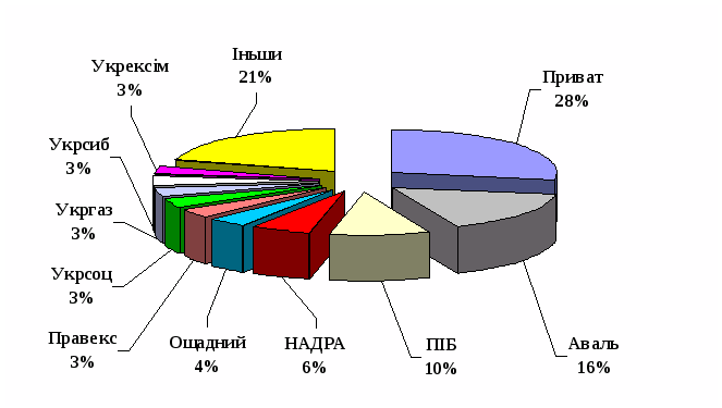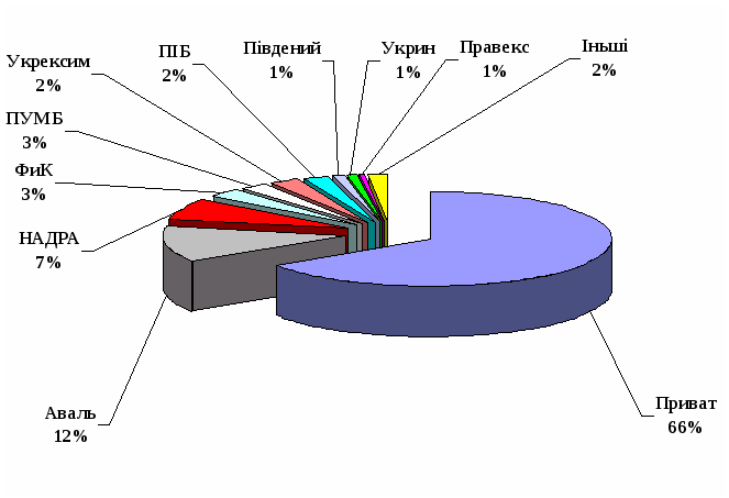 Безперечним лідером у цієї галузі є дніпропетровський Приватбанк, другу та третю позиції держать банки АВАЛЬ та НАДРА. Ці три фінансові установи тримають більш ніж 60% українського ринку банківських карток. Однак недивлячись на це ще біля 10 банків досить активно працюють у цьому сегменті банківських послуг. Це такі стовпи банківської діяльності як ПІБ, Укрсоцбанк, ПУМБ, Ощадбанк та ін. Найбільш динамічно розвиваючий цей напрямок діяльності є банк НАДРА.