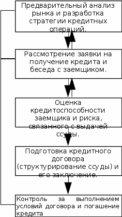 В рамках своей организационной структуры каждый банк создает отдел или группу отделов, которые отвечают за выдачу и оформление кредитов, анализ ссудного портфеля, контроль за ходом погашения предоставленных кредитов и т.д. В небольших банках процедура выдачи кредитов предельно упрощена; каждый кредитный инспектор обслуживает разные категории заемщиков и выполняет всю работу по оценке кредитоспособности клиента и т.п.