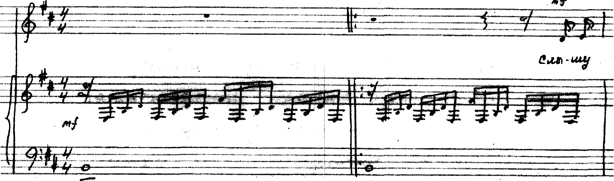 Лена подстраивала свое пение к фортепианным триолям и получался такой ритмический рисунок: