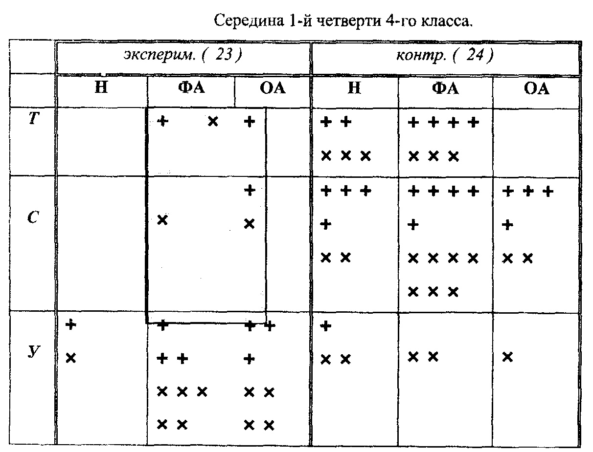 Н – неадекватно; Ф – формально адекватно; ОА – образно адекватно; Т – ориентация на товарищей; С – ориентация на себя; У – ориентация на учителя; В – ориентация на внутренние переживания.