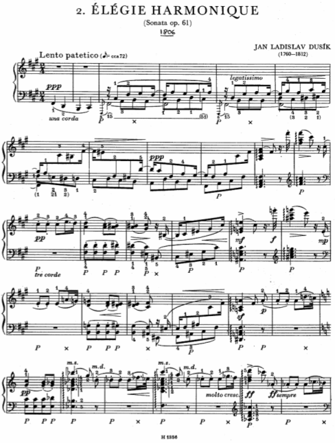Соната Яна Ладислава Дуссека Elegie Harmonique, написанная им в 1806 году, заслуживает отдельного внимания.