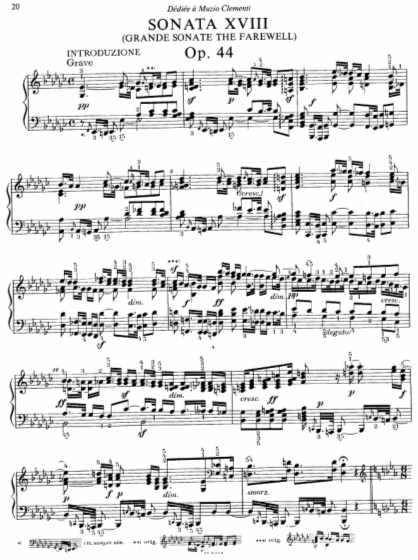 Влияние Дуссека на Бетховена так же заметно в знаменитой Сонате op81а Бетховена. "… и проект и реализация обнаруживают огромное влияние Сонаты Дуссека op44 "Прощание"