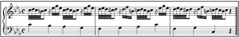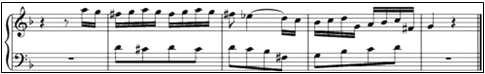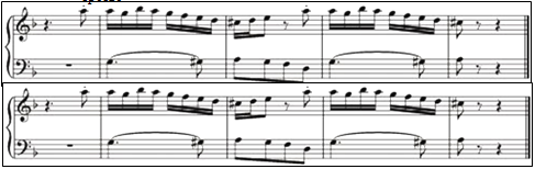 Для итальянской клавирной музыки 18 века также характерна насыщенность большим количеством цезур. Не только на гранях разделов. Но и на гранях партий. И в самих партиях. Тематизм содержит черты множества кадансовых замыканий: он формируется из кадансов и типичных простейших гармонических формул