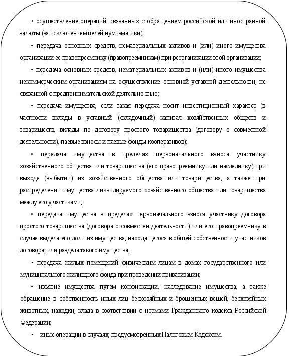 реализация на территории РФ продукции, работ, услуг собственного производства; реализация имущества предприятия (основных средств, нематериальных активов, сырья, материалов, топлива, запасных частей, тары, МБП);