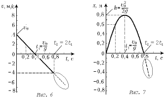 Предположим, что, подбросив мяч, девочка затем ловит его. Тогда в момент времени t2 = 0,8 с полет мяча прерывается, мяч оказывается в руках девочки. Следовательно, обведенные овалом участки графиков не имеют реального физического смысла. Как видим, перевод результатов математического анализа природного процесса на язык слов необходим для ос мысления этих результатов.
