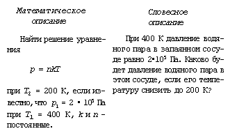 Во-первых, сами задачи, встающие перед учеными, формируются и формулируются словесно, словесное описание природных процессов ближе к реальности, чем математическое. Возьмем для примера два описания одной и той же задачи.