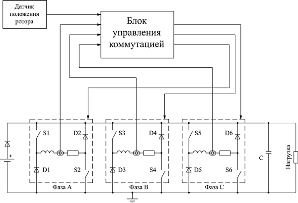 датчики положения ротора и тока фазы, которые могут выполняться интегрированными с блоком управления коммутацией;
