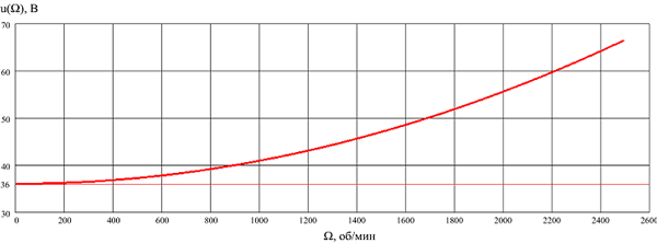 С ростом скорости вращения, ЭДС генератора, вызванная перемещением зубцов ротора относительно зубцов статора, возрастает пропорционально скорости вращения. Требуемая мощность возбуждения при этом уменьшается.