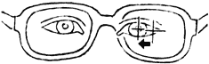 Призматическое действие бывает у любых очков. Оно проявляет себя кажущимся движением предметов при движениях головы. Чтобы этот эффект стал нагляднее, снимите ваши очки, отодвиньте их немного от глаз и, глядя на какой-либо предмет, перемещайте их медленно вправо и влево: предмет при этом будет совершать кажущиеся движения: при положительных линзах – противоположные движению очков (а), при отрицательных – в ту же сторону (б). Такое же движение может возникать и при надетых очках, когда человек смотрит не через центр, а через край стекол (рис. 7).