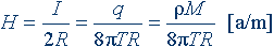 Естественно, если вращающееся тело имеет электрический заряд, то вращение заряда создает ток I, который производит магнитное поле. По формуле связи тока с напряженностью магнитного поля рассчитаем величину напряжения Н: