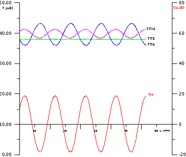 Рис.3. Временные диаграммы сигналов термопар при питании переменным током.