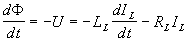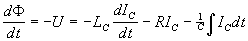 где Ф есть полный магнитный поток, заключённый между лайнером и катушкой (в электродинамике магнитный поток определяется как число силовых линий магнитного поля, пересекающих некоторый замкнутый контур, поэтому величина Ф соответствует сумме всех магнитных потоков для каждого витка катушки, участвующих в процессе сжатия), L>C>(t) есть самоиндукция катушки и I>C> есть ток в катушке.