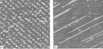 Эксперимент, выполненный с помощью сканирующего туннельного микроскопа с гомосистемой Pt/Pt(111)5 , показывает [36] (рис. 9), что адсорбированные атомы платины мигрируют по поверхности грани (111) монокристалла платины, не подчиняясь закону Фика. Они образуют острова нового слоя с различной пространственной структурой в зависимости от значений температуры поверхности и скорости подачи атомов. Это могут быть рыхлые острова фрактальной структуры с фрактальной
