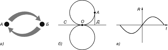 Рис. 1. Циклы реального мира: а) структура цикла; б) структура времени в цикле; в) структура пространства в цикле